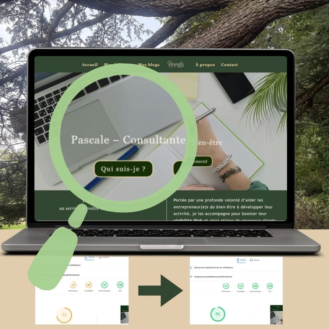 Dans ce guide, je partage avec vous les étapes que j’ai moi-même parcourues : du projet encore flou au site vivant, crédible et visible. Quelques ajustements simples m’ont permis, par exemple, de faire passer mon site de 71 % à 91 % de performance, et de 89 % à 92 % en accessibilité, sur mobile.